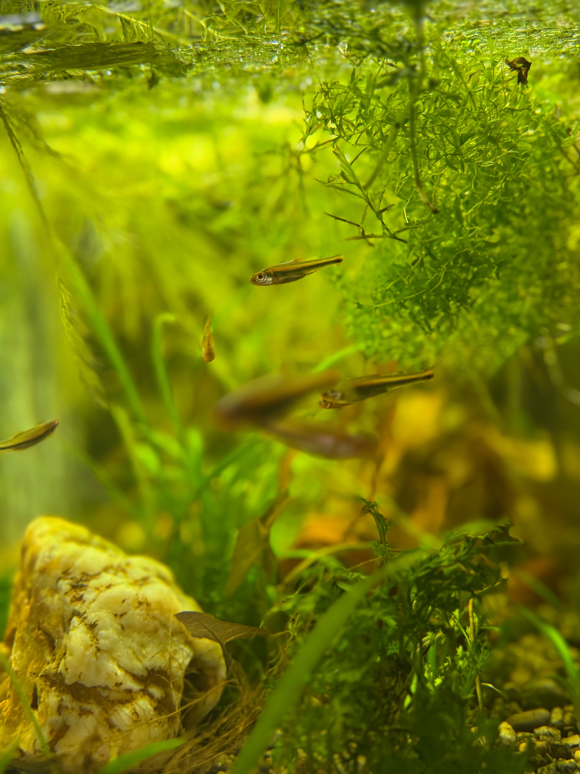 Rainbow shiners do best in a clean, established aquarium with good oxygenation, room to swim, and a proper school of their own kind. They are active midwater fish and look best in groups where their movement and color really stand out.